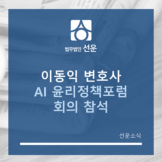 앞으로도 법무법인 선운은 AI 시대의 책임 있는 기술 활용을 위한 법적 기반 마련에 기여할 수 있도록 지속적으로 참여해 나가겠습니다.