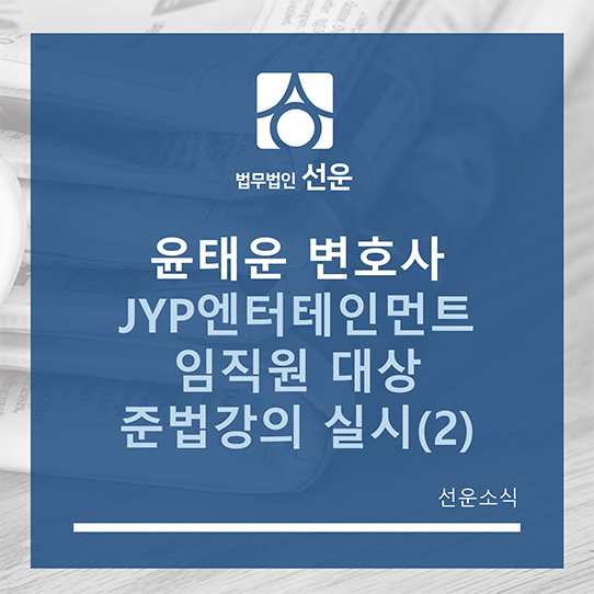 이와 관련해 법무법인 선운의 윤태운 변호사는 동의의결의 이행점검을 담당하는 한국공정거래조정원의 요청으로 지난달에 이어 이번 달 15일과 23일에 JYP엔터테인먼트 임직원들을 대상으로 하도급법 준수 및 동의의결 제도의 이해 등에 관한 교육을 진행했습니다.