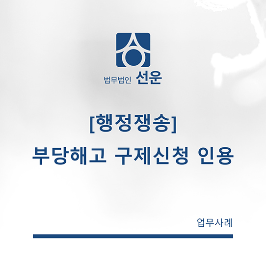 행정쟁송부당해고 구제신청 인용[법무법인 선운][행정쟁송]부당해고 구제신청 인용의뢰인(근로자)은 강원도 ○○군 소재 사단법인에서 약 2년 4개월간 근무하였습..2025.09.25