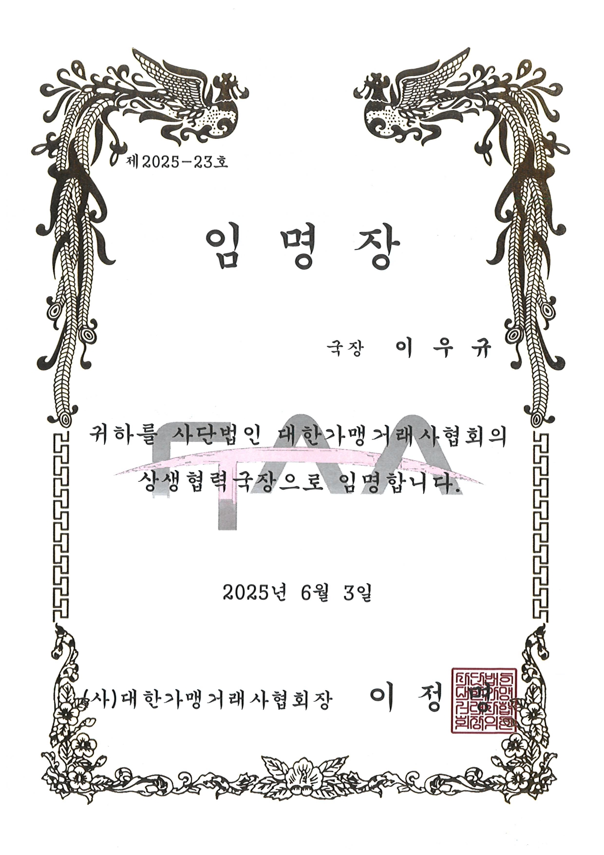 이우규 변호사 사단법인 대한가맹거래사협회 상생협력국장 임명