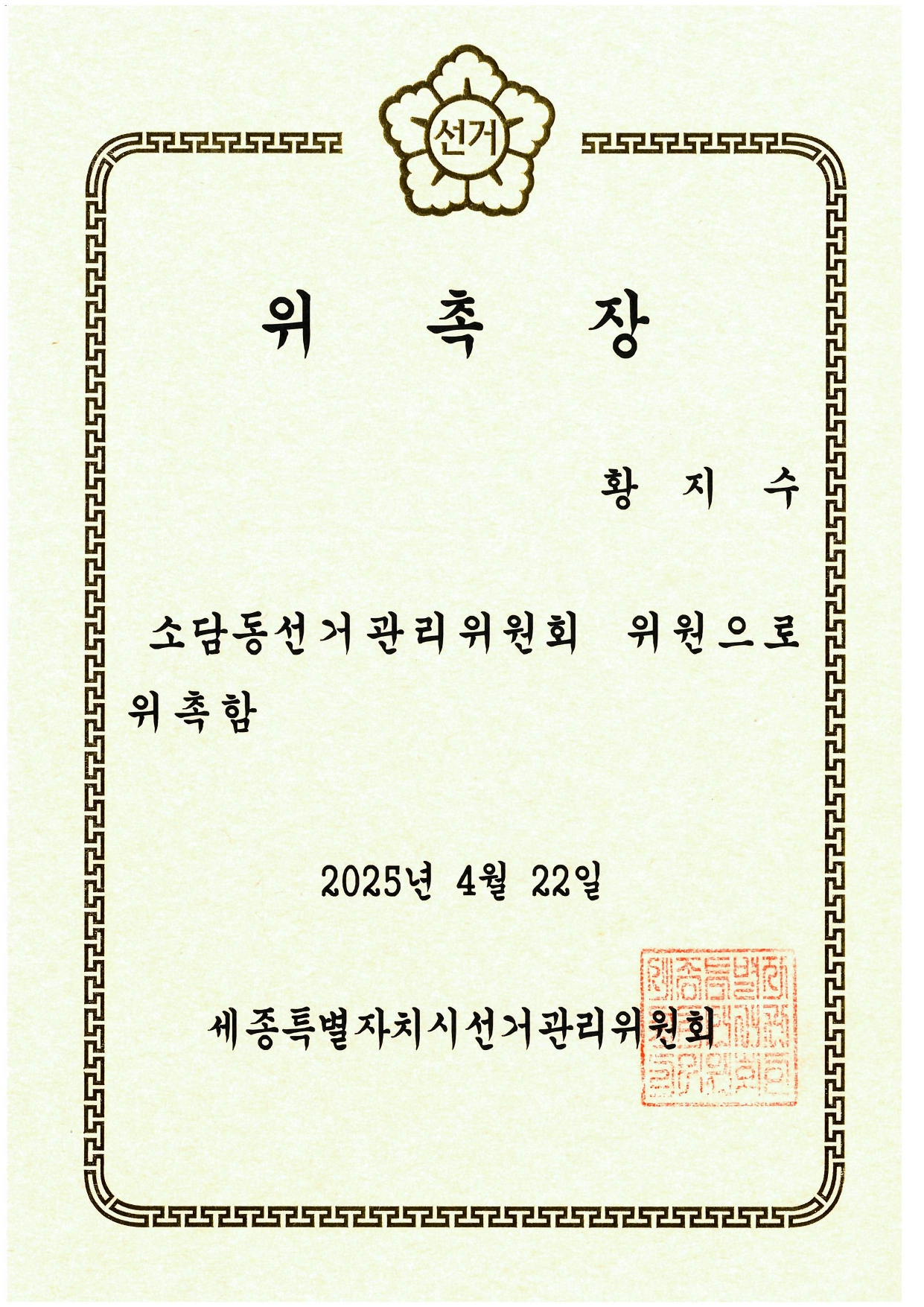 황지수 변호사 소담동선거관리위원회 위원 위촉