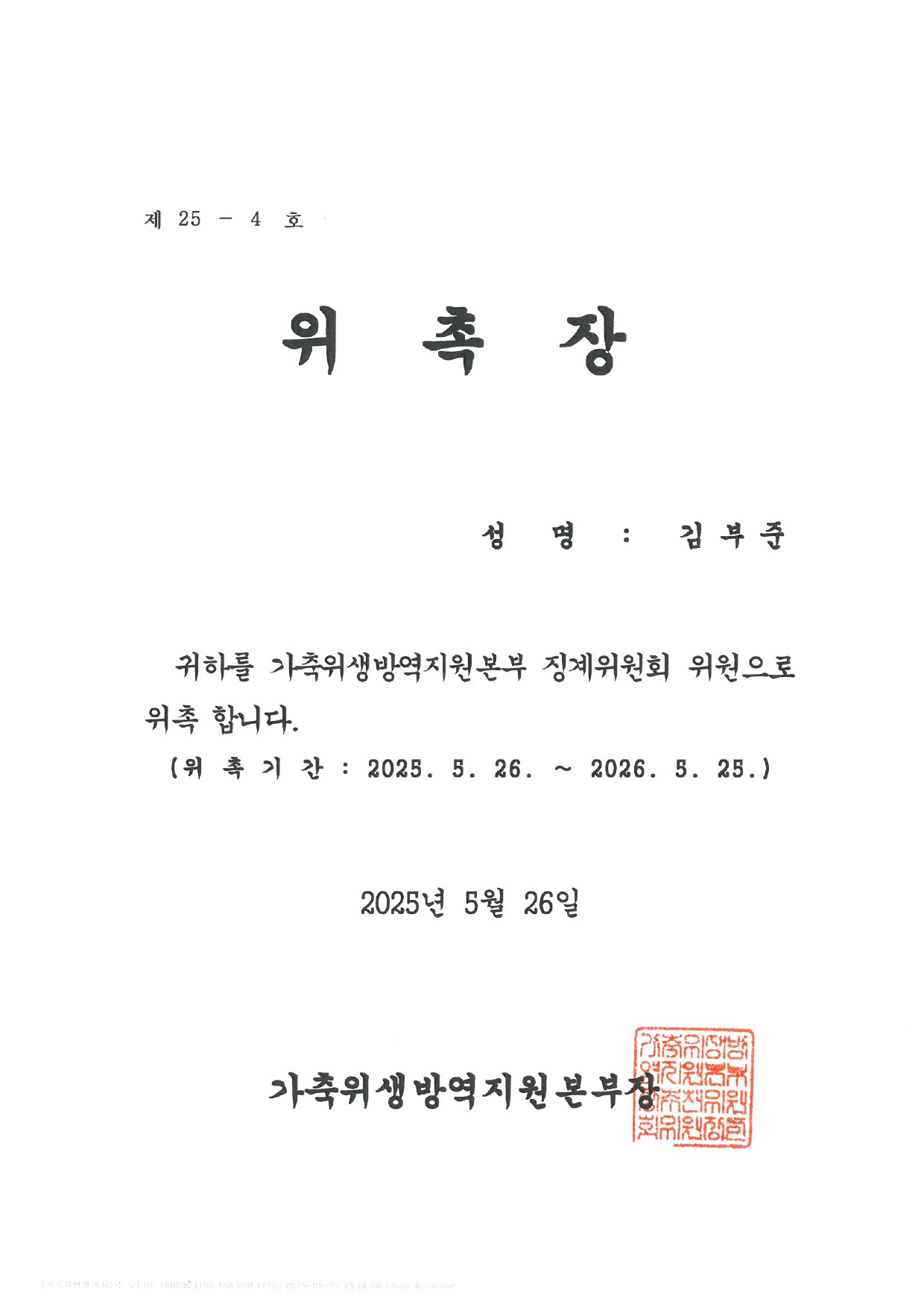 김부준 변호사 가축위생방역지원본부 징계위원회 위원 위촉