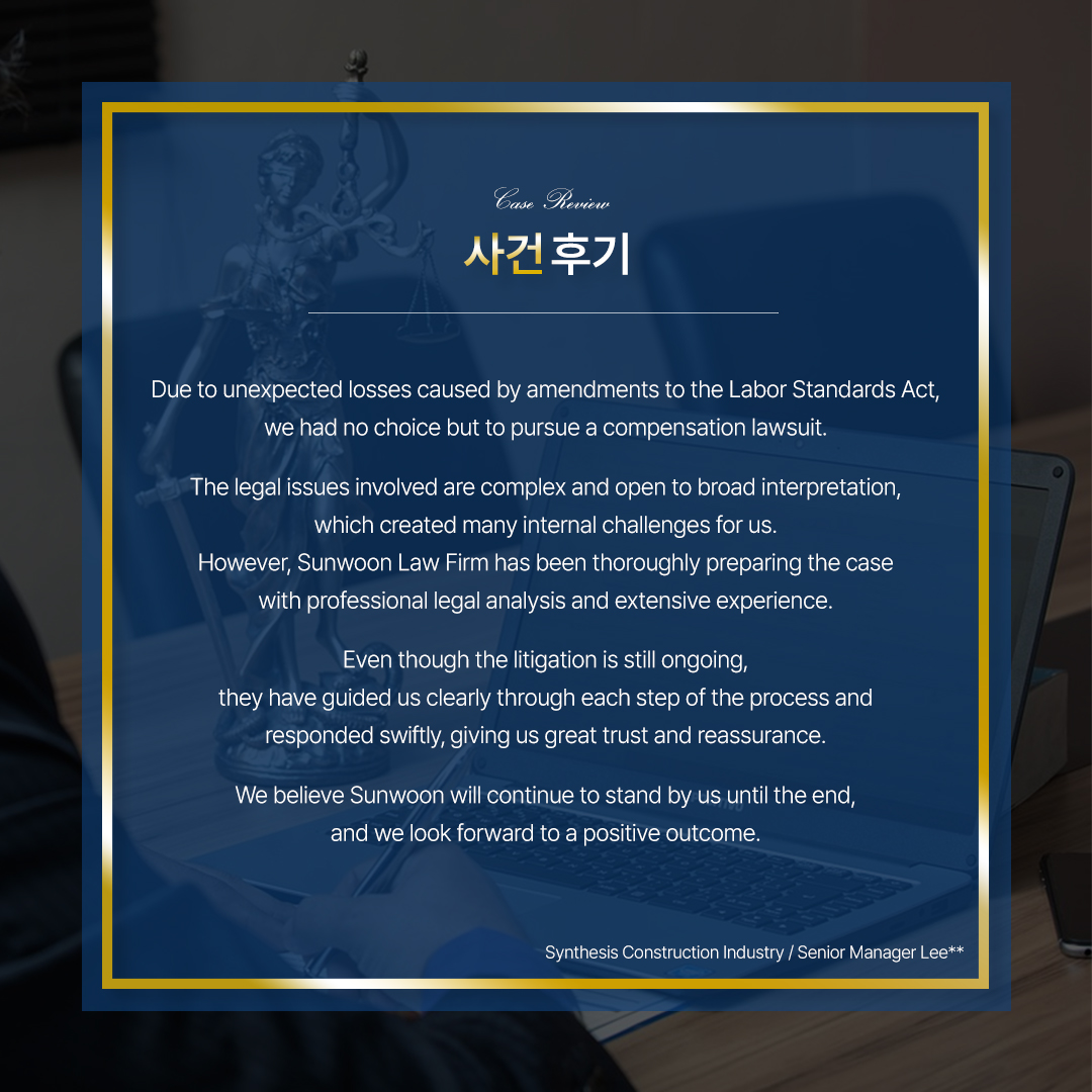 Sunwoon strives to further enhance the quality of our legal services based on our clients' valuable feedback.