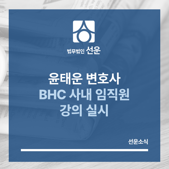 선운소식윤태운 변호사, BHC 사내 임직원 강의 실시윤태운 변호사는 11월 17일 BHC 사내 임직원을 대상으로 가맹본부 임직원을 위한 가맹사업 관련 규제동향 안내 강의를 진..2025.11.19
