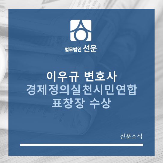 이우규 변호사는 (사)대한가맹거래사협회 상생협력국장으로서 소상공인지원센터 운영에 적극 참여하여 소상공인의 권익 보호에 기여한 공로를 인정받아, 경제정의실천시민연합으로부터 이번 표창을 받았습니다.